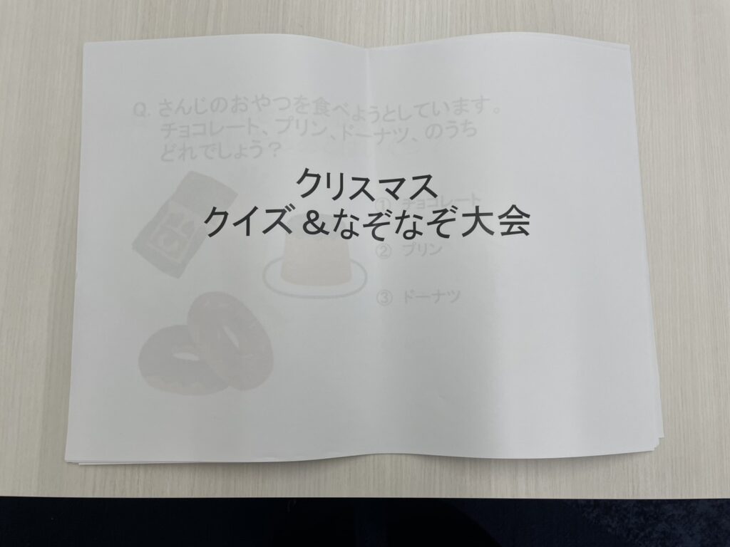 ↑クイズ・なぞなぞ大会を実施しました!おや?問題がうっすら写っていますね?🤔